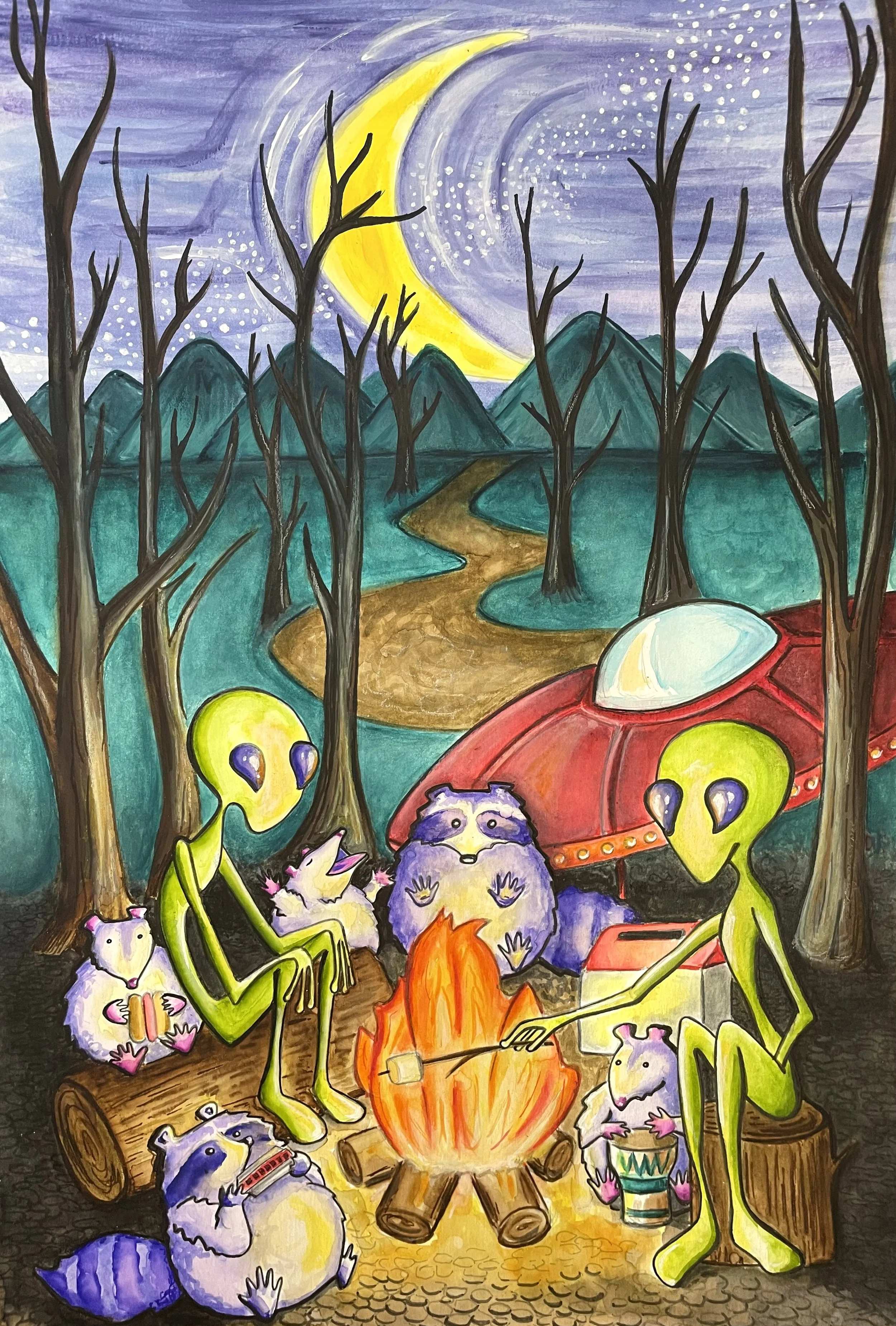Space Camp - 12” x 18” Mixed Media on Watercolor Paper. $300 USD