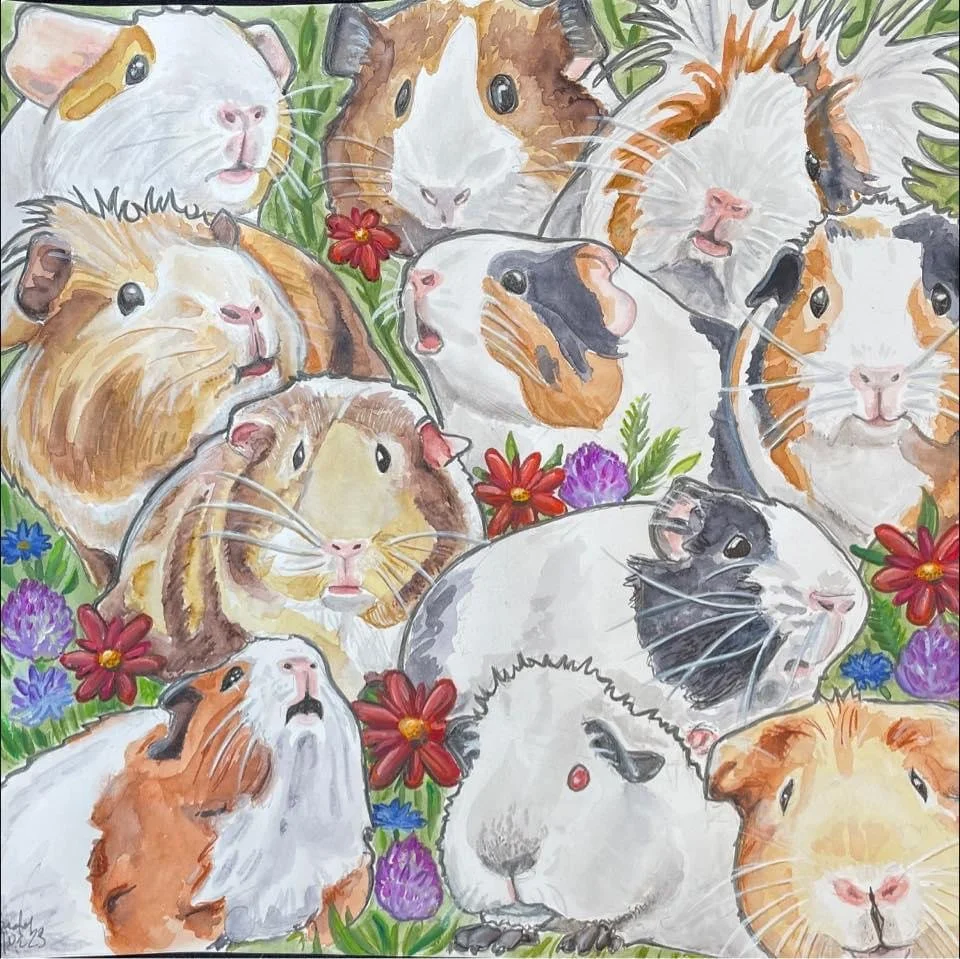Piggies for Wheeks - 10” x 10” Mixed Media on Watercolor Paper. $250 USD