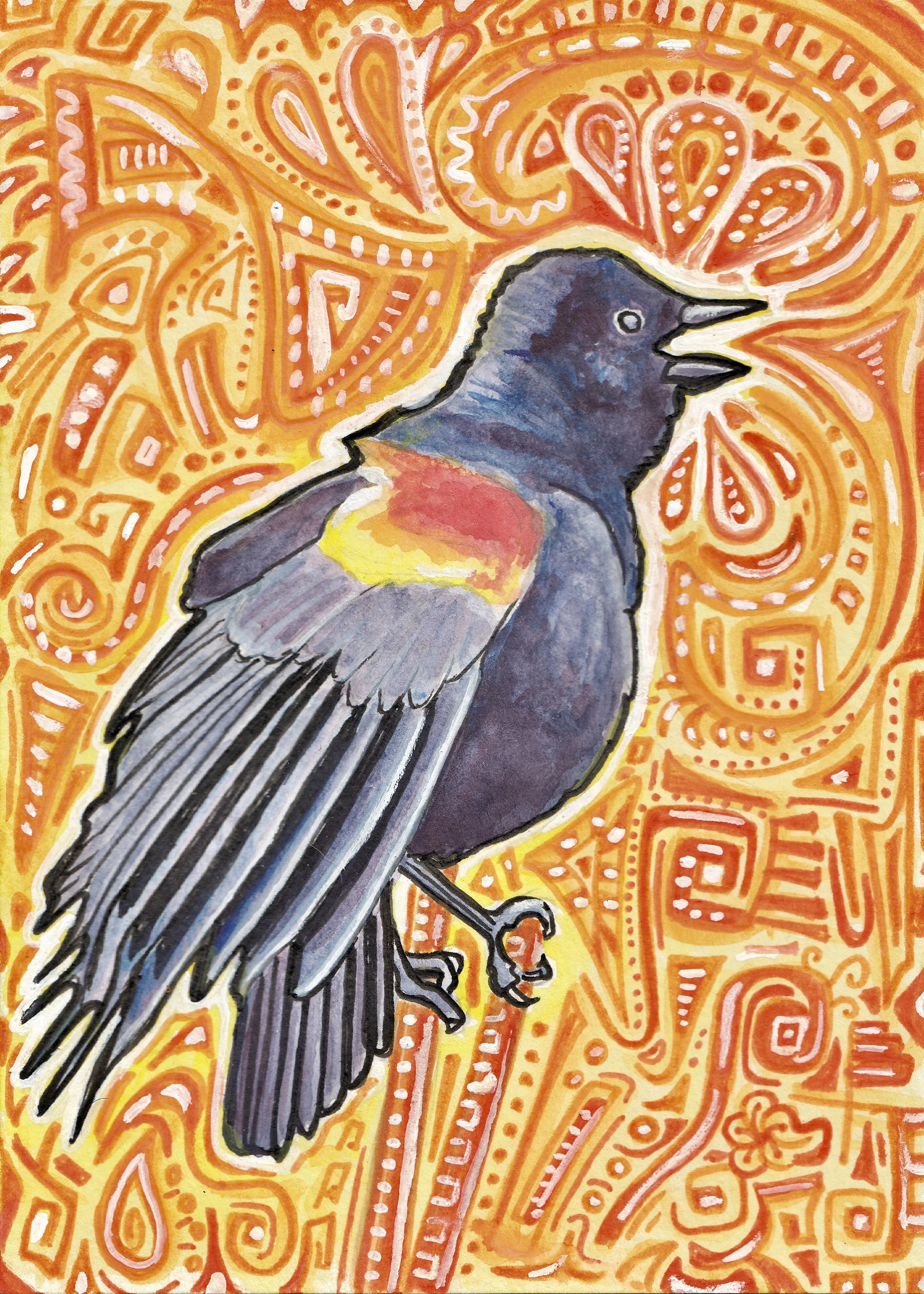 Summersong Blackbird - 5” x 7” Mixed Media on Watercolor Paper.